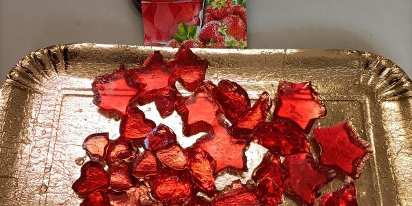 De seguida, os moldes foram colocados no congelador, e algum tempo depois as gomas solidificaram, ficando prontas para serem desenformadas.