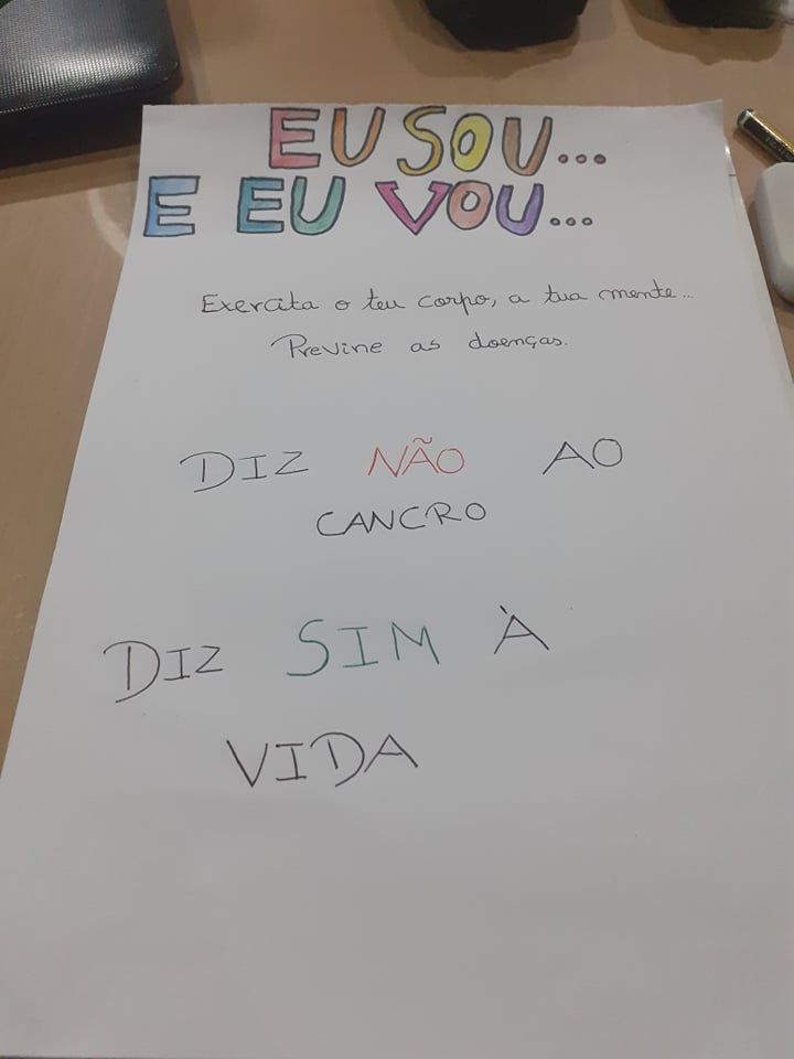 Os alunos do 2.º ciclo foram desafiados a analisar informações sobre como prevenir o cancro e sensibilizados a agir no seu dia-a-dia, junto da sua comunidade. As ações desenvolvidas consistiram na elaboração de slogans, desenhos, fotos com legenda ou vídeos.