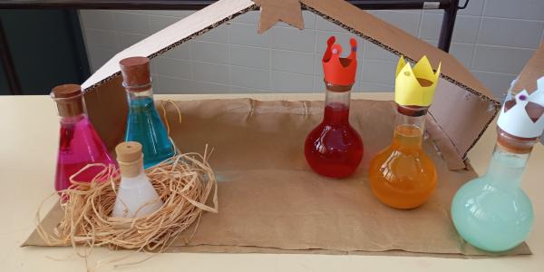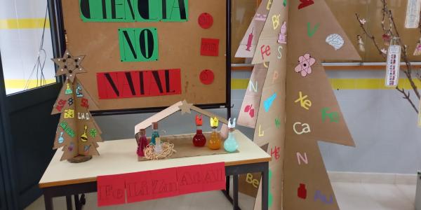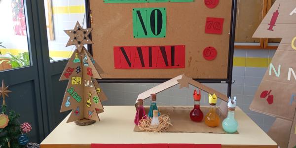 No espírito natalício, os alunos do terceiro ciclo da Escola Básica de São João de Loure deram asas à criatividade e à curiosidade científica, construindo um Presépio Químico e árvores de Natal originais decoradas com estrelas, planetas, materiais de laboratório, sólidos de Platão, símbolos e fórmulas químicas.