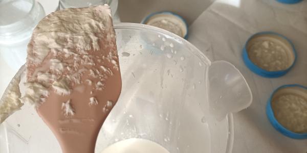Tudo começou com um simples frasco onde se colocaram as natas. Dentro dele, “viviam” pequenas bolinhas de gordura, cada uma protegida por um casaco invisível. À medida que o frasco ia sendo abanado, as bolinhas chocavam umas com as outras, dando início a uma transformação surpreendente.