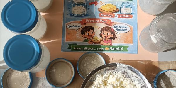 Os alunos da turma IG1 viveram uma atividade diferente e muito especial, que foi uma verdadeira experiência em todos os sentidos. Com curiosidade e entusiasmo, colocaram mãos à obra para descobrir como se faz manteiga… apenas com natas frescas, um frasco e muitas sacudidelas!