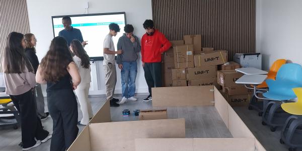 - A montagem de um labirinto e a programação de robôs para ultrapassar obstáculos;