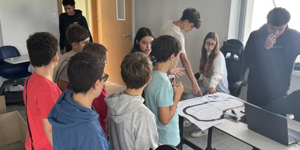 Durante o evento, os alunos circularam pelos vários postos tecnológicos e receberam muitos visitantes curiosos de outras turmas, a quem explicaram com entusiasmo o que estavam a desenvolver.